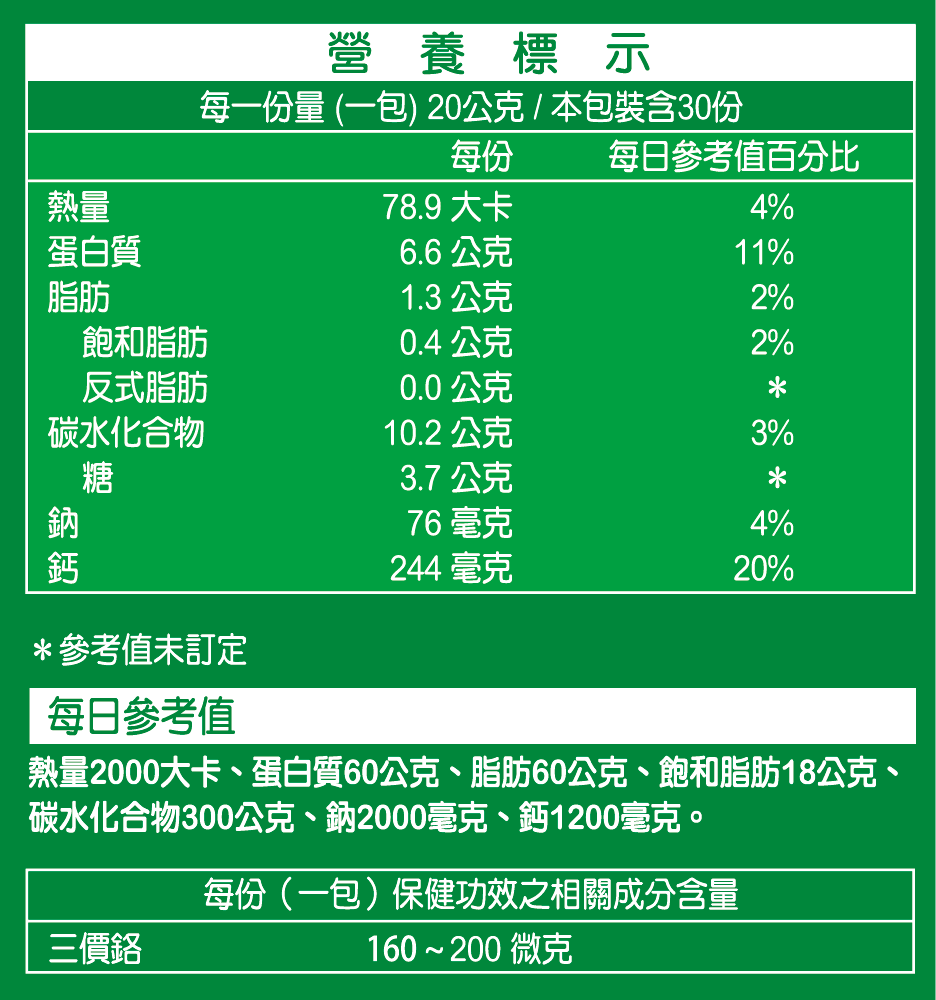 *成分:奶粉、乳清蛋白、乳鐵蛋白、三氯化鉻
